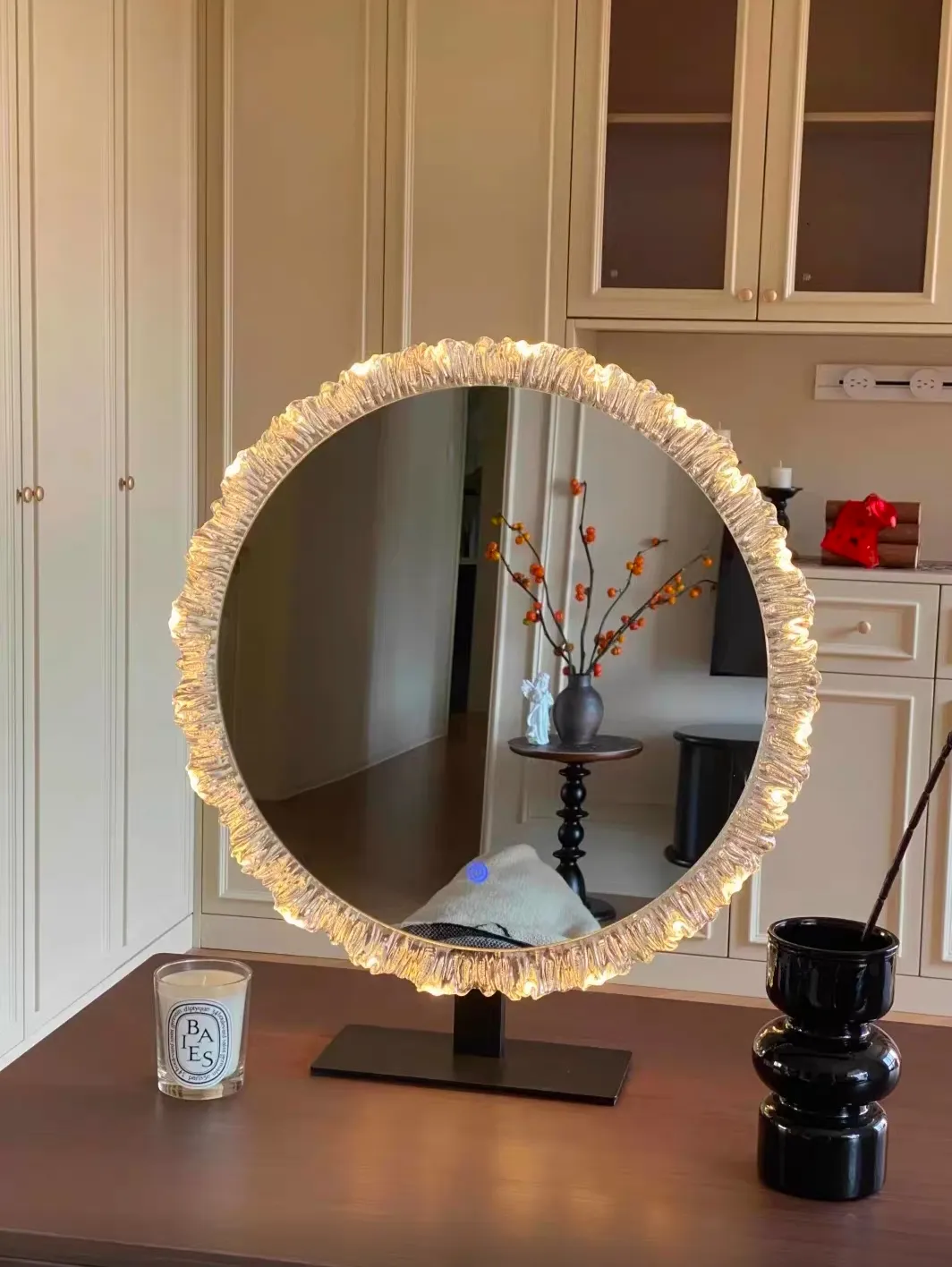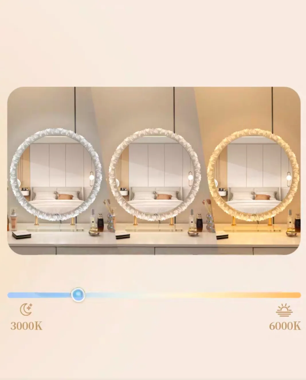 Customizable Art Deco Design LED Makeup Mirror for Bedroom Desktop Wedding Ready