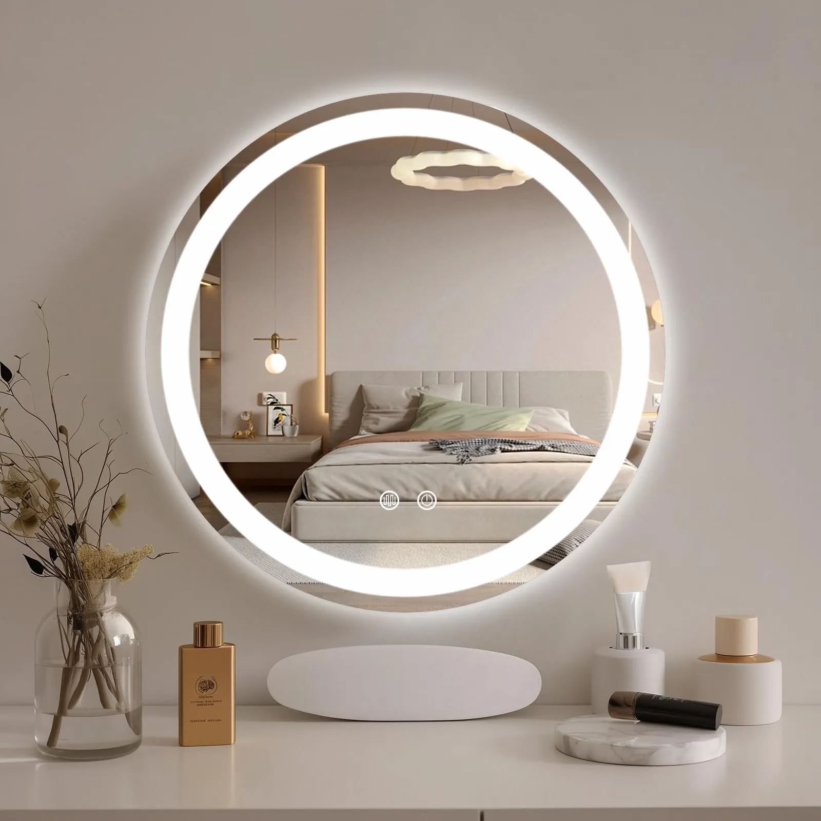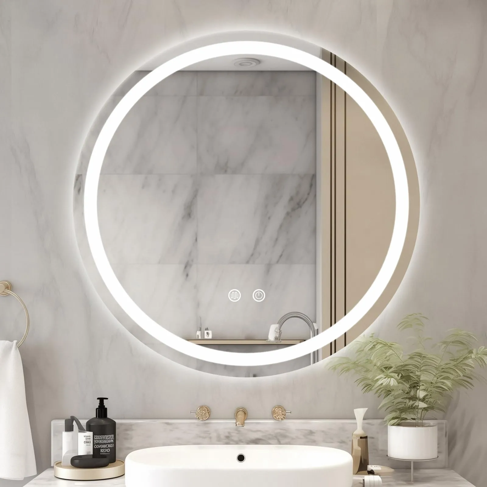 This mirror features a sleek, circular shape that adds a touch of minimalist elegance to your bathroom. The frameless design seamlessly blends with various decor styles, from modern to Scandinavian - inspired interiors. The circular LED light ring surrounding the mirror not only serves as a stylish accent but also provides uniform, shadow - free illumination.