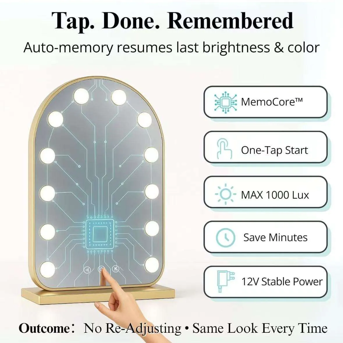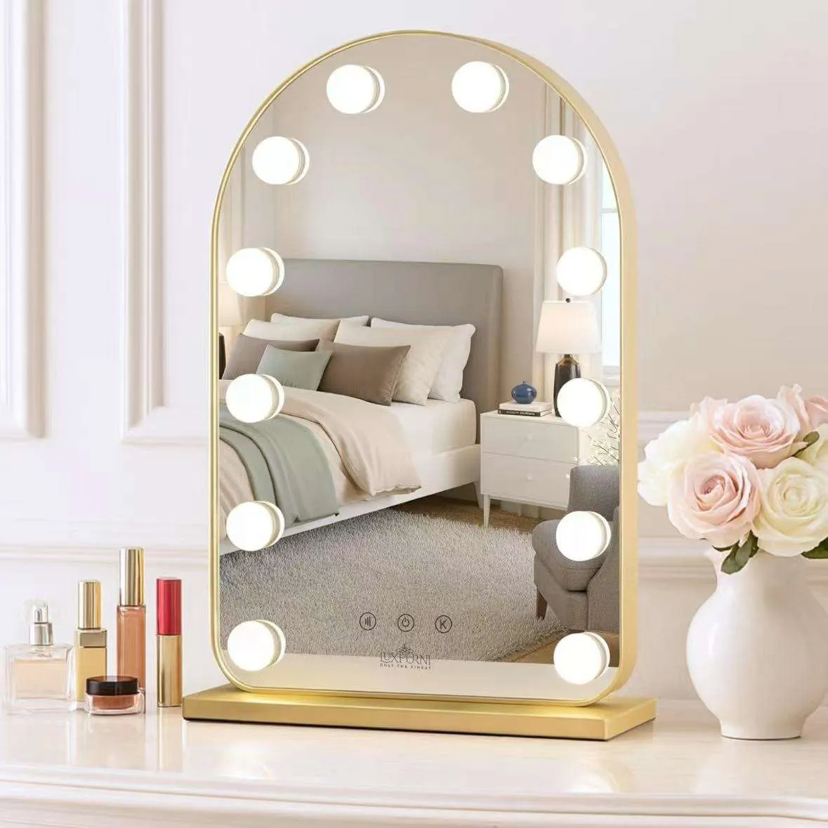 The sleek arched design adds a modern touch to your dressing table, bedroom, or beauty salon, while the stable base ensures secure placement. It also supports USB charging for convenient power access (cable included).