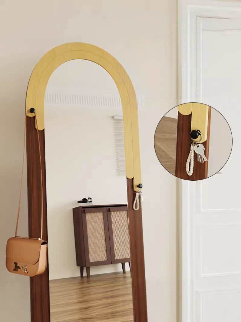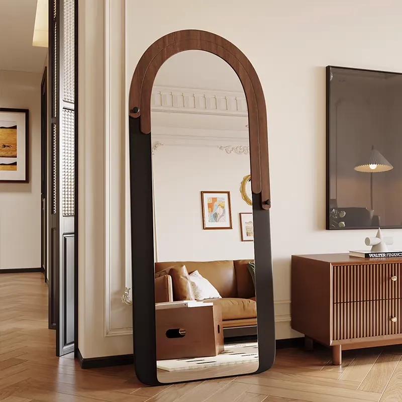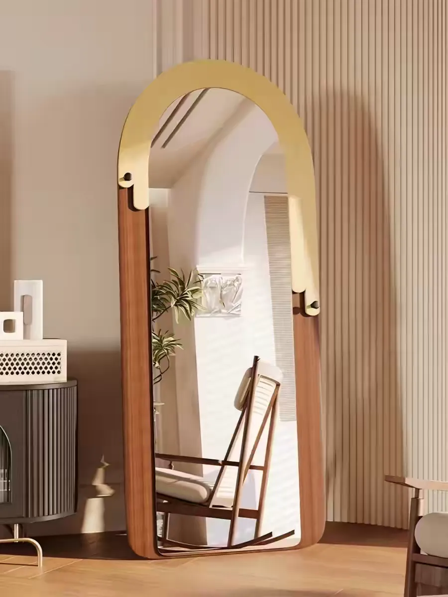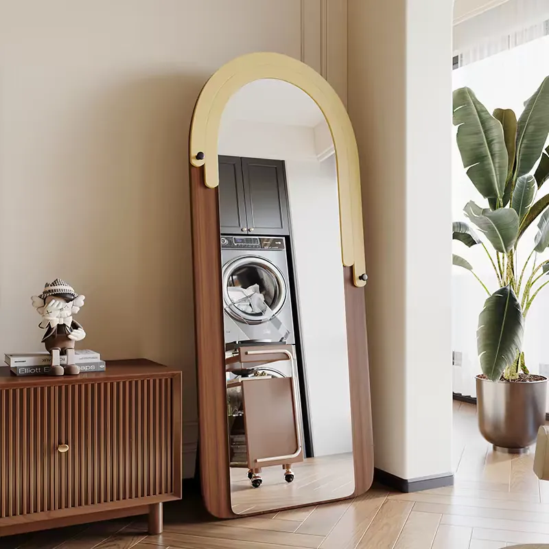Retro Home Decor Full-Length Floor Standing Mirror Luxury High-End Minimalist Style Light Storage for Women's Bedroom Dressing