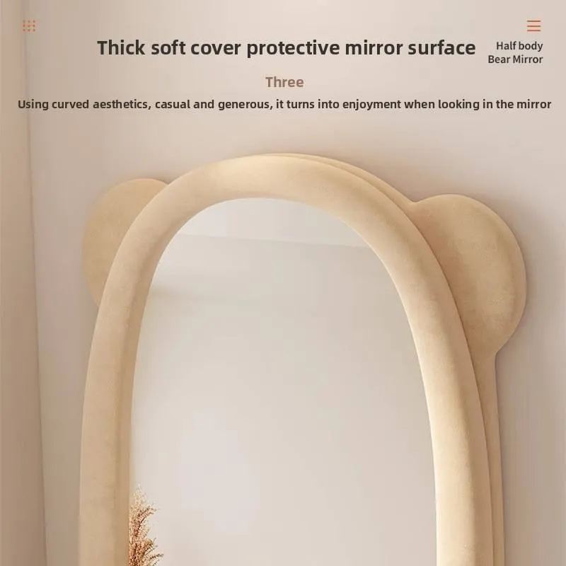 Teddy Bear Velvet Full-Length Mirror for Kids’ Room