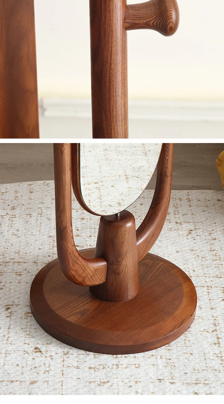 Vintage-Inspired Rotating MDF Wooden Full-Length Mirror & Coat Rack: A Fusion of Style and Function